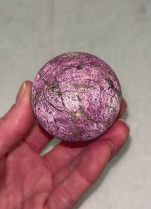 High Grade Velvet Purpurite Sphere Purpurite is a manganese iron phosphate mineral that usually occurs on the surface of Triphylite due... Read more