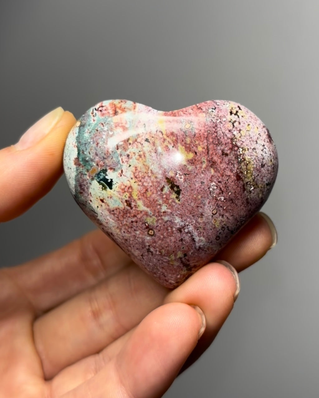 Pink Ocean Jasper Heart Origin: Madagascar Size : 51 x 46 x 26 mm Weight: 69Â gr Read more