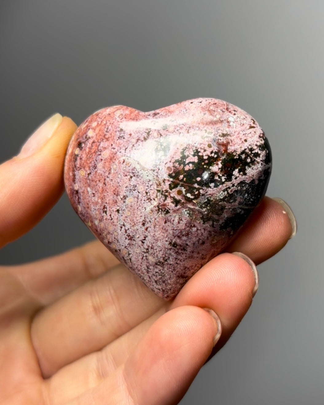 Pink Ocean Jasper Heart Origin: Madagascar Size : 48 x 46 x 23 mm Weight: 56 gr Read more