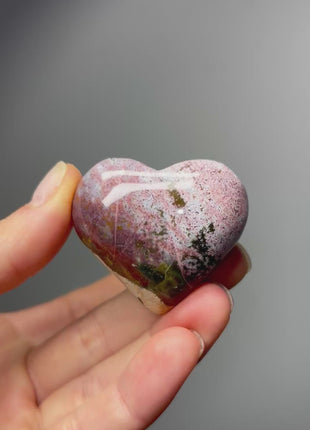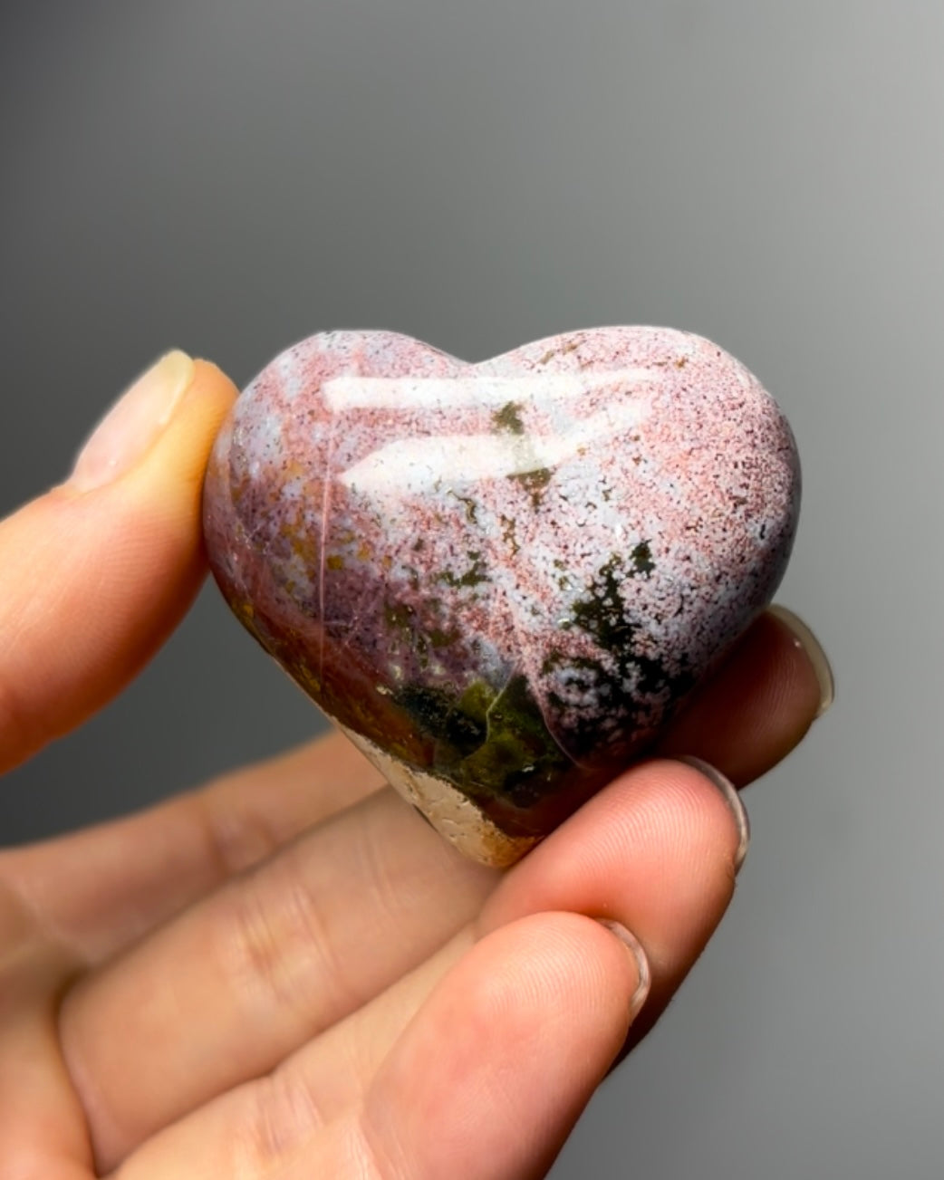 Pink Ocean Jasper Heart Origin: Madagascar Size : 47 x 42 x 21 mm Weight: 52 gr Read more