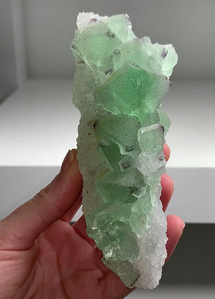 Unusual Icy Green Octahedral Fluorite with Purple Corners together with Quartz Origin: Chenzhou, Hunan, China Size range: 136 - 60 -... Read more
