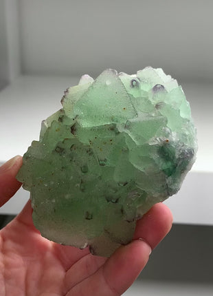 Unusual Icy Green Octahedral Fluorite with Purple Corners together with Quartz Origin: Chenzhou, Hunan, China Size range: 85 - 44 -... Read more