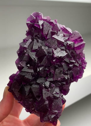 Beautiful Octahedral Purple Fluorite From: Zhejiang, China Size: 106 mm x 90 mm x 72 mm Weight: 476 Grams Read more