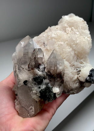 New Arrival ! Black Tourmaline with Quartz and Snow Albite