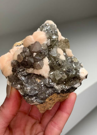 Pink and Orange Barite Flowers with Cerussite and Galena Origin: Mibladen, Haute Moulouya Basin, Midelt, Morocco Size: 84 x 72... Read more