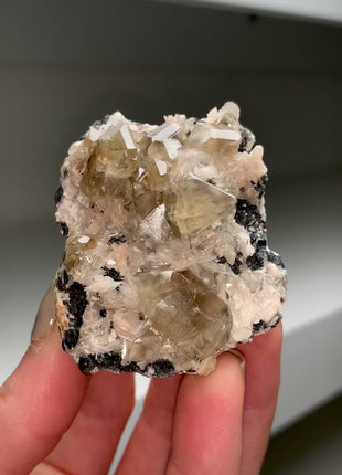 Beautifully terminated Cerussite with Pink Barite Origin: Mibladen, Haute Moulouya Basin, Midelt, Morocco Size: 50 x 45 x 25 mm... Read more