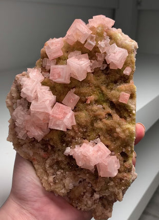 Pink Halite on Trona from an old find. Incredible Crystallization. Very Aesthetic Specimen. Mined 6+ Years Ago Origin: Owens Lake,... Read more