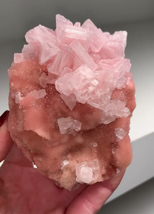 Beautiful Pink Halite with Pink Trona. Incredible Crystallization. Very Aesthetic Specimen. Origin: Searles Lake, California Size: 190 x 75 x 30... Read more
