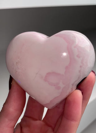 Pink Manganocalcite heart with a beautiful pattern Amazing UV Reaction and Glow ! Origin: Peru Size: 70 x 66 x... Read more
