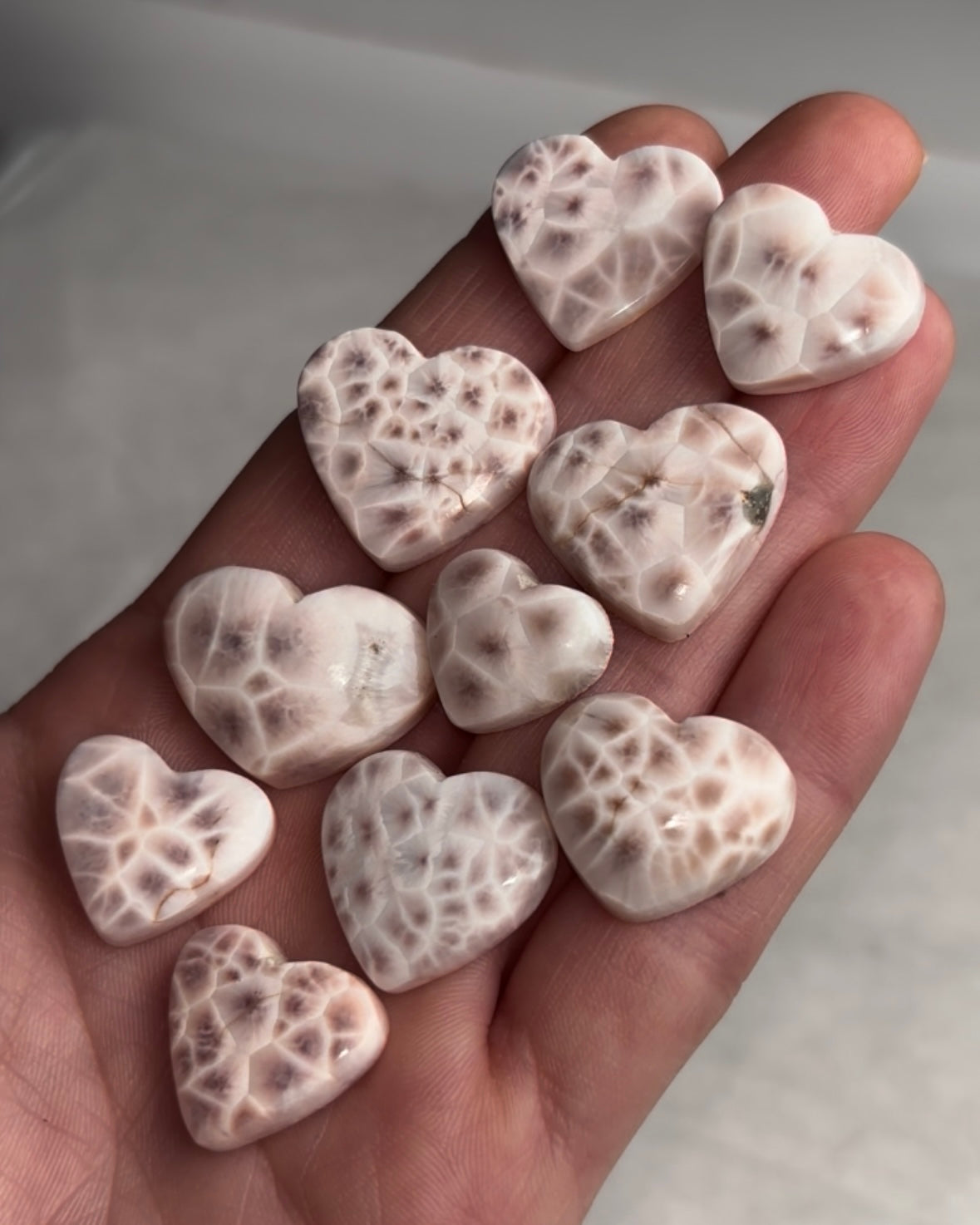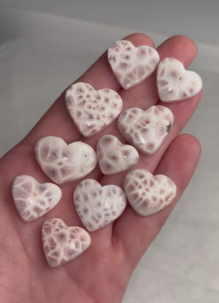 Gorgeous Pink Larimar (Natrolite) Hearts.