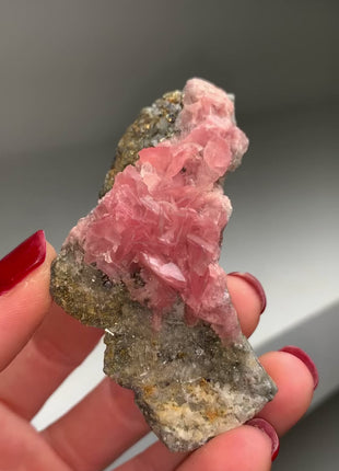 Pink Rhodocrosite Flowers with Quartz Origin: Wutong Mine, Liubao, Cangwu Co., Wuzhou, Guangxi, China Size: 75 x 40 x 28... Read more