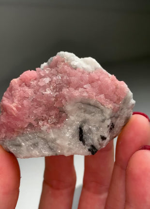 Pink Rhodocrosite Flowers with Quartz Origin: Wutong Mine, Liubao, Cangwu Co., Wuzhou, Guangxi, China Size: 62 x 45 x 33... Read more