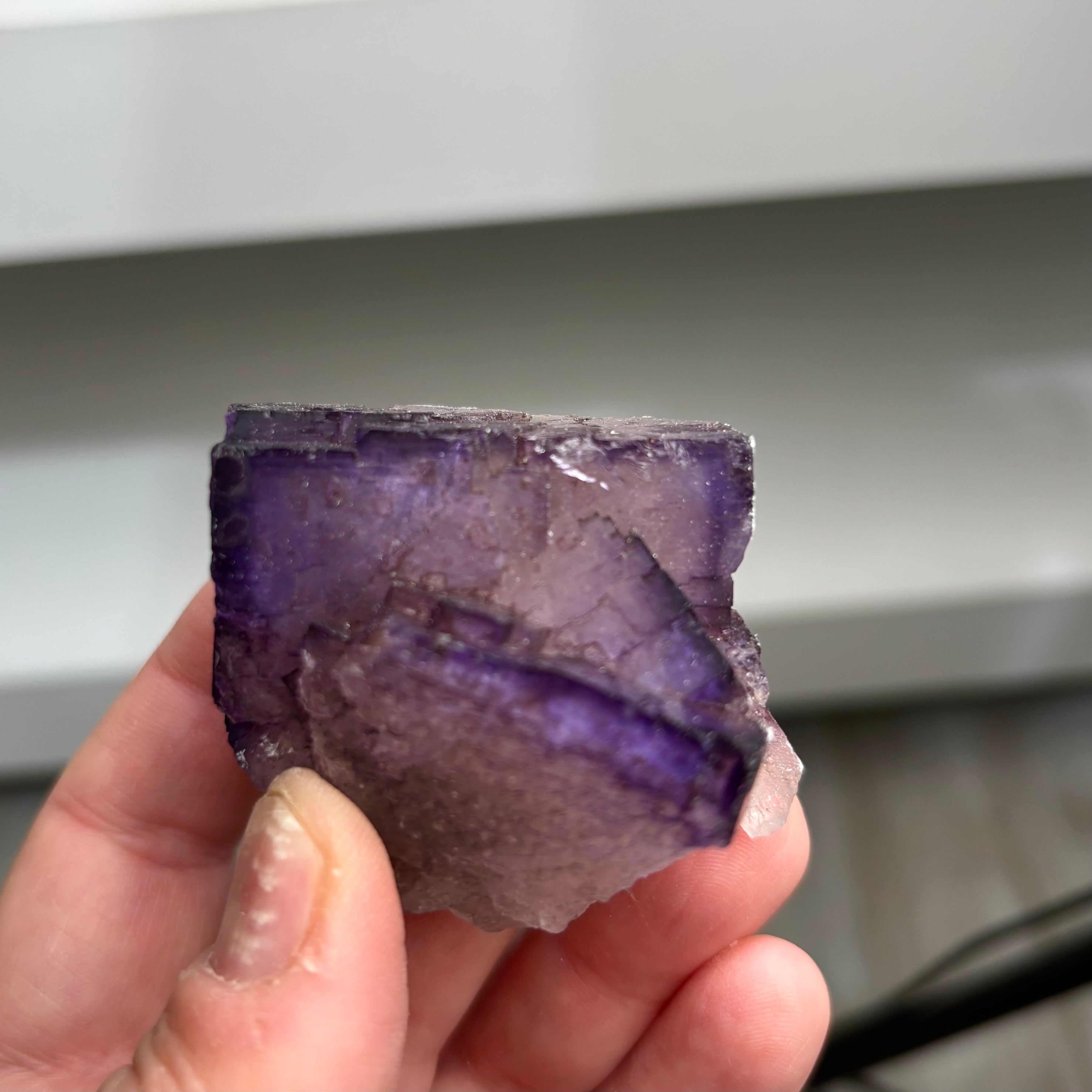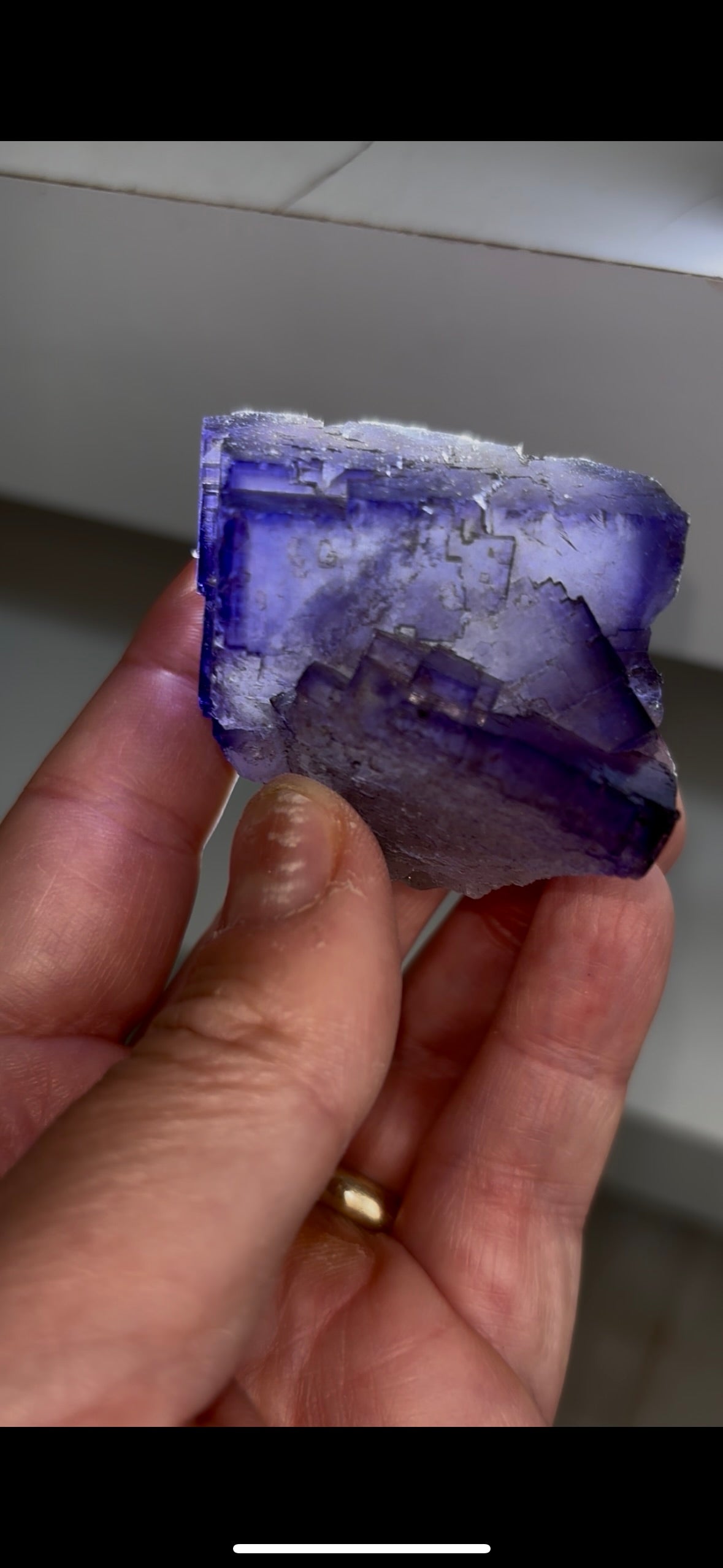 Beautiful Blurple Fluorite. From the closed locality in Mexico Great color with light behind. From: Muzquiz, Mexico Size: 68 x 52... Read more