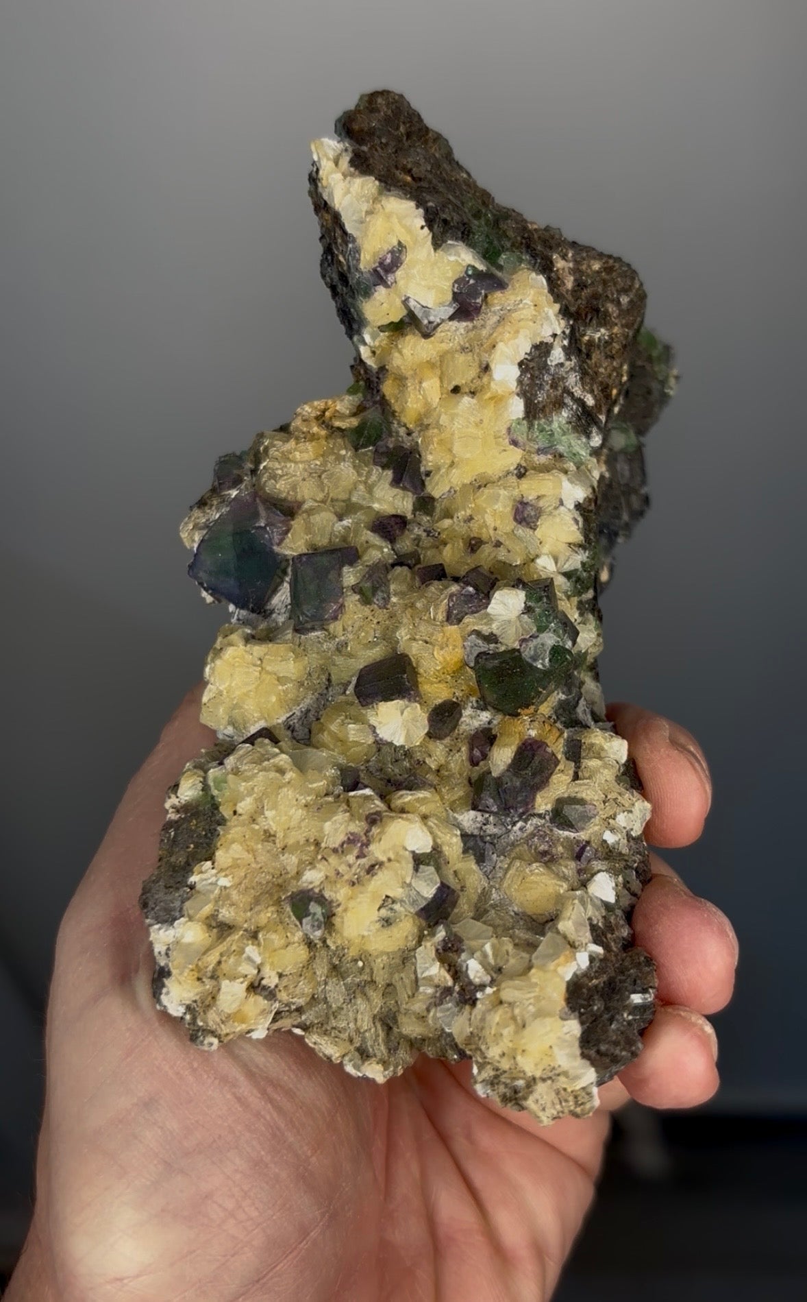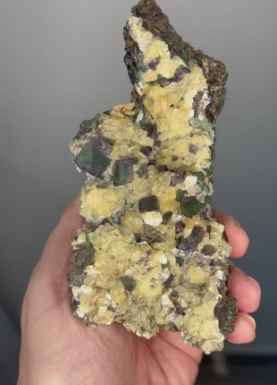 Green Purple Fluorite with Yellow Mica. Origin: Erongo Mountains, Namibia Size: 145 x 90 x 60 mm Weight: 574 gr Read more