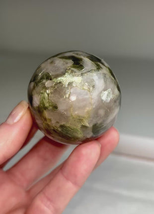 Rare Green Lepidolite with Quartz Sphere Origin: Minas de Gerais, Brazil Diameter : 50 mm Weight: 166 grams Read more