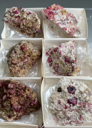 Raspberry Grossular Garnet Specimens 8 pieces lot Origin: Sierra de Cruces, Coahuila, Mexico Size Range: 48 mm - 76 mm Weight... Read more
