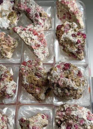 Raspberry Grossular Garnet Specimens 12 pieces lot Origin: Sierra de Cruces, Coahuila, Mexico Size Range: 70 mm - 84 mm Weight... Read more