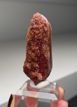 Druzy Red Chocolate Quartz Origin: Tinejdad, Errachidia Province, Morocco Size: 75 x 32 x 28 mm Weight: 59 gr Read more