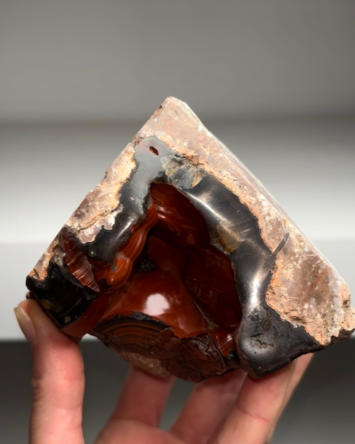 Red Crater Agate Geode Origin : Ankara, Turkey Size : 95 x 93 x 90 mm Weight : 700 grams Read more