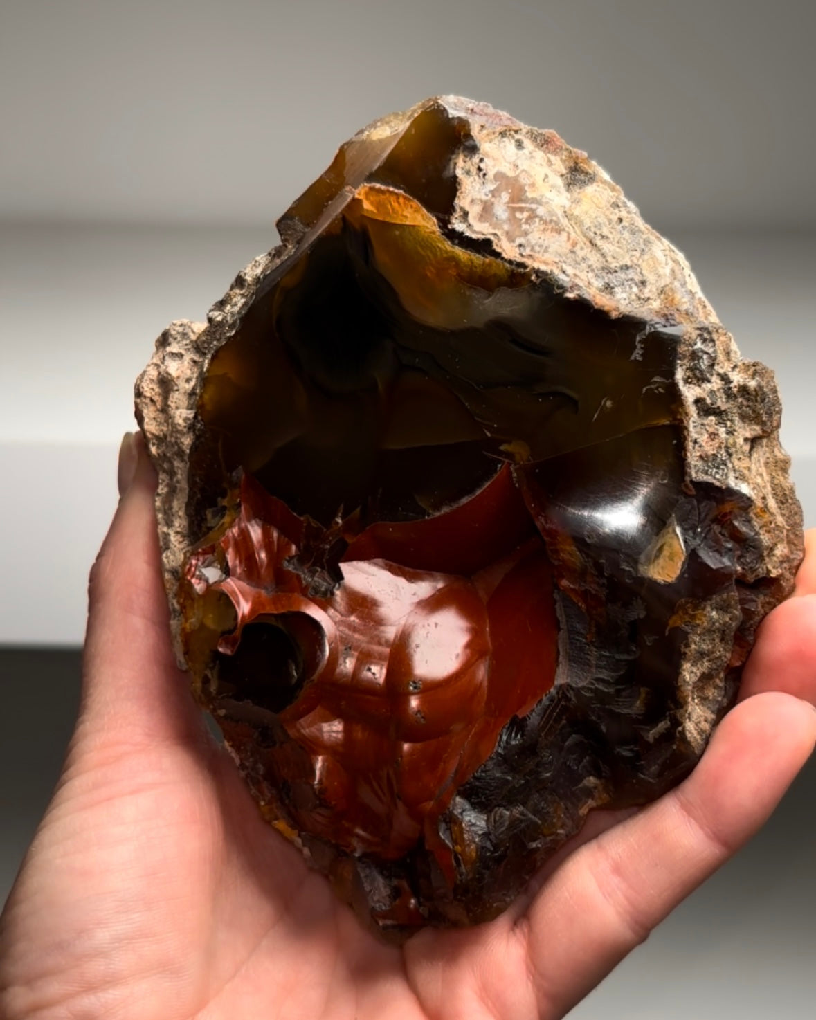 Red Crater Agate Geode Origin : Ankara, Turkey Size : 135 x 115 x 56 mm Weight : 715 grams Read more