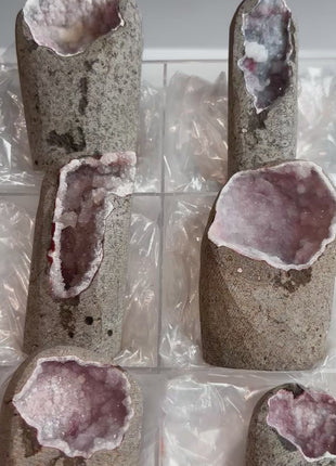 Druzy Pinkish Chalcedony Geodes Origin: Nashik, Maharashtra, India 6 Pieces Size Range: 102 - 73 mm Weight: 1345 gr Read more