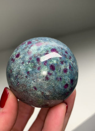 Ruby with Gorgeous Blue Kyanite, Green Fuchsite Sphere Perfectly polished with shiny surface Origin: India Diameter: 52 mm Weight: 263... Read more