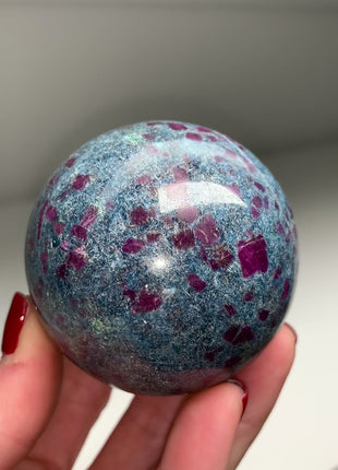 Ruby with Gorgeous Blue Kyanite, Green Fuchsite Sphere Perfectly polished with shiny surface Origin: India Diameter: 60 mm Weight: 390... Read more