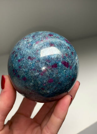 Ruby with Gorgeous Blue Kyanite, Green Fuchsite Sphere Perfectly polished with shiny surface Origin: India Diameter: 73 mm Weight: 666... Read more