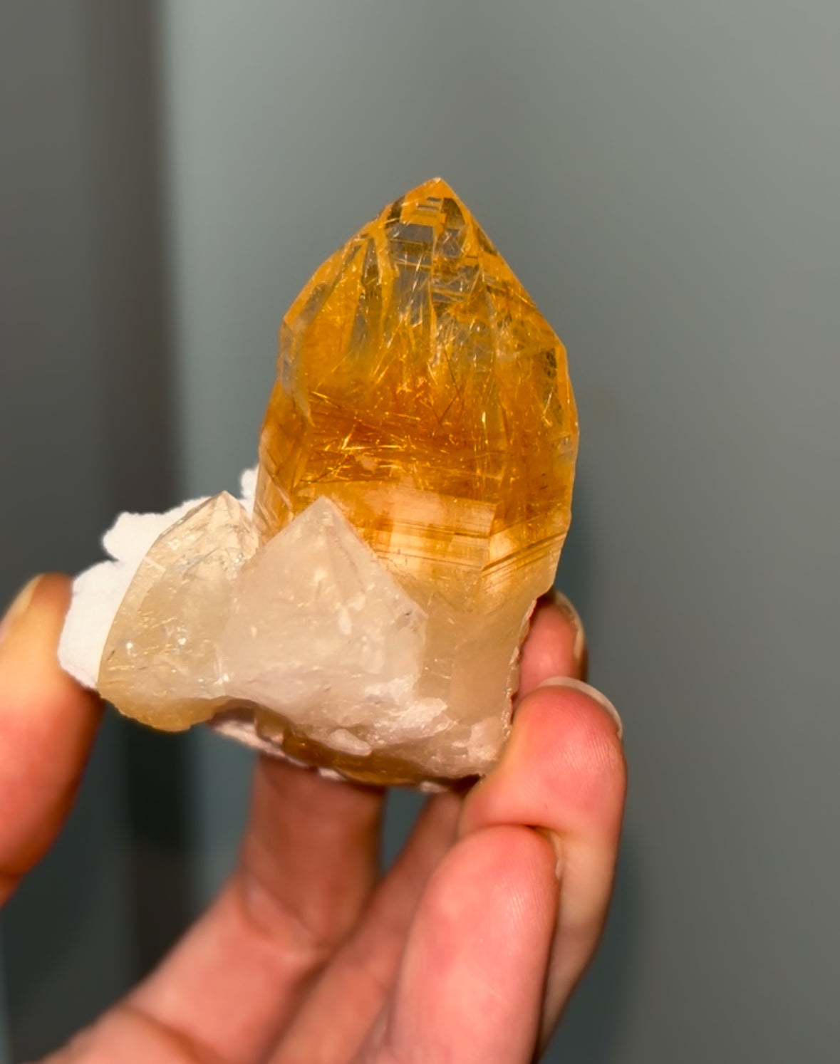 Amazing Rutile Quartz on White Quartz. From a recent discovery. Rare combination of two different Quartz together. Great color contrast.... Read more