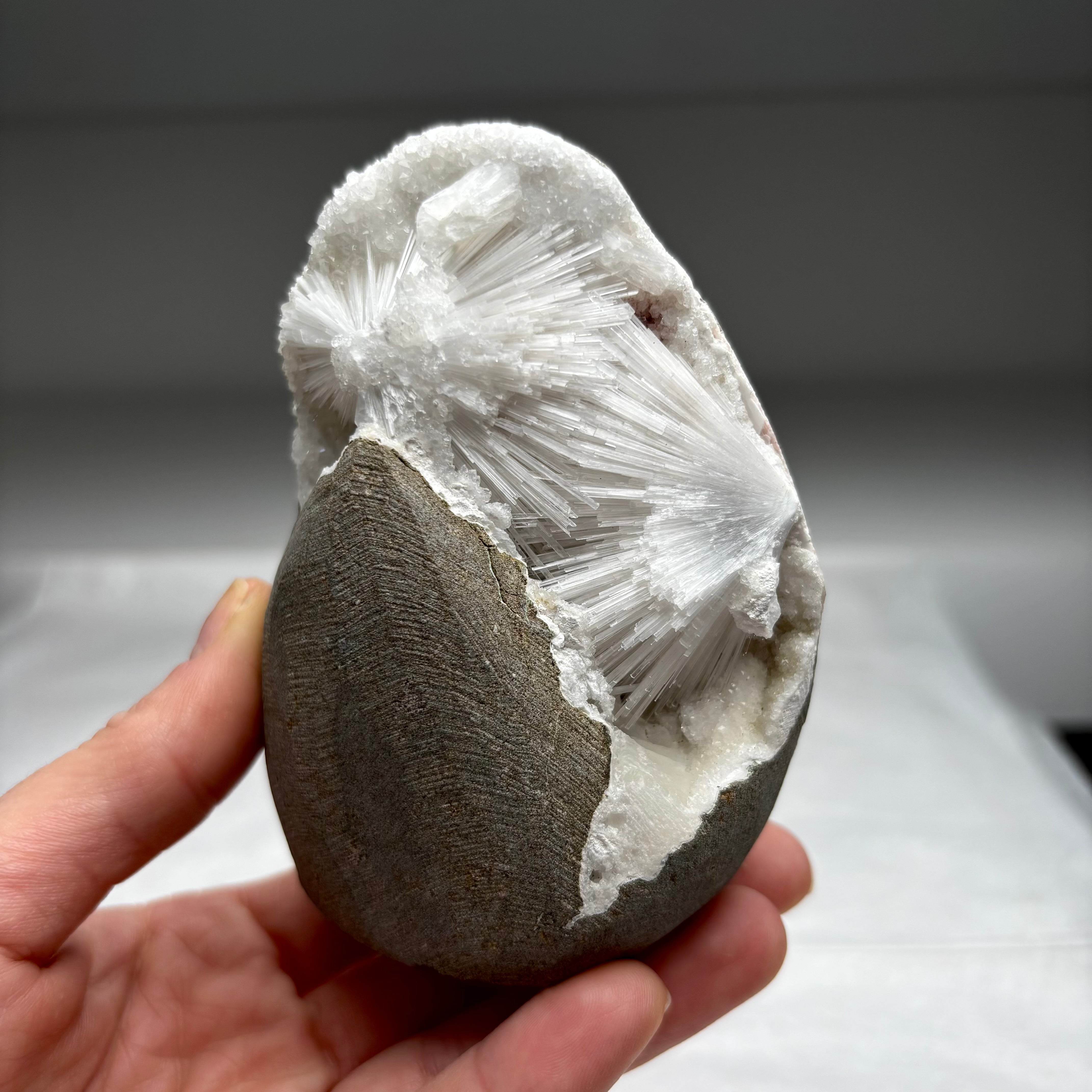 Scolecite Geode with Druzy Quartz