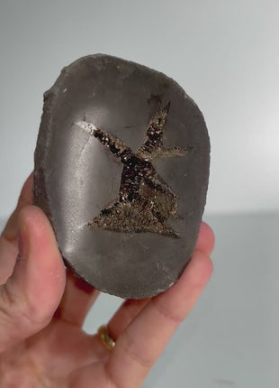 This rare piece features a Septarian geode half that is polished with an open interior showing fine sparkling Barite crystals within. The name Septarian is derived from the Latin word " septum", meaning partition, and refers to the divisions or cracks that are typical of this sort of rock. They are generally formed in calcium rich clay which then hardens to form this type of limestone nodule, with the dark grey exterior. Over many years, the rock contracts, giving rise to cracks, later becoming filled with water. Calcite crystals slowly then formed in the center. This specimen of French barite has excellent form and beautiful subtle crystallization features.
