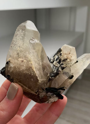 Smoky Citrine with Black Tourmaline Last year’s find From: Erongo Mountains, Namibia Size: 80 x 60 x 40 mm Weight: 234 gr Read more