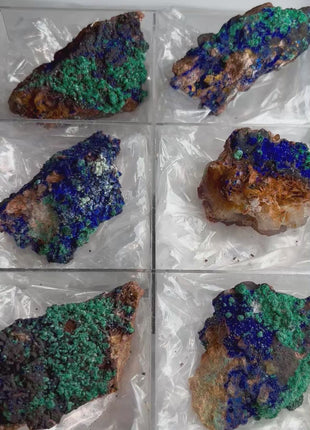 Sparkling Blue Azurite with Green Malachite - 6 Piece Lot !