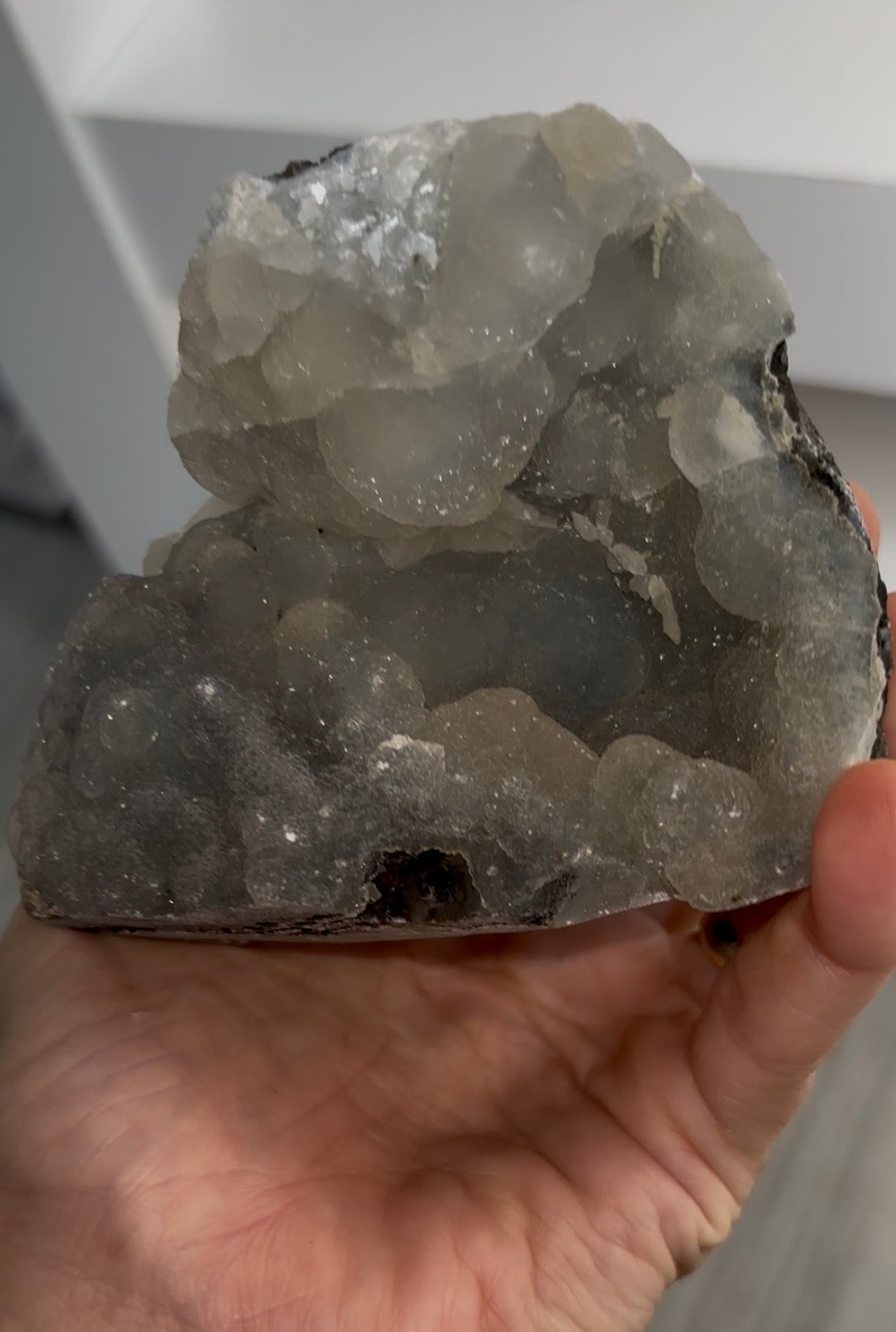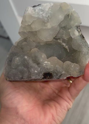 Magical Blue Chalcedony with Sparkly Crystals Origin: Nashik, India Size : 105 x 90 x 78 mm Weight: 628 grams Read more