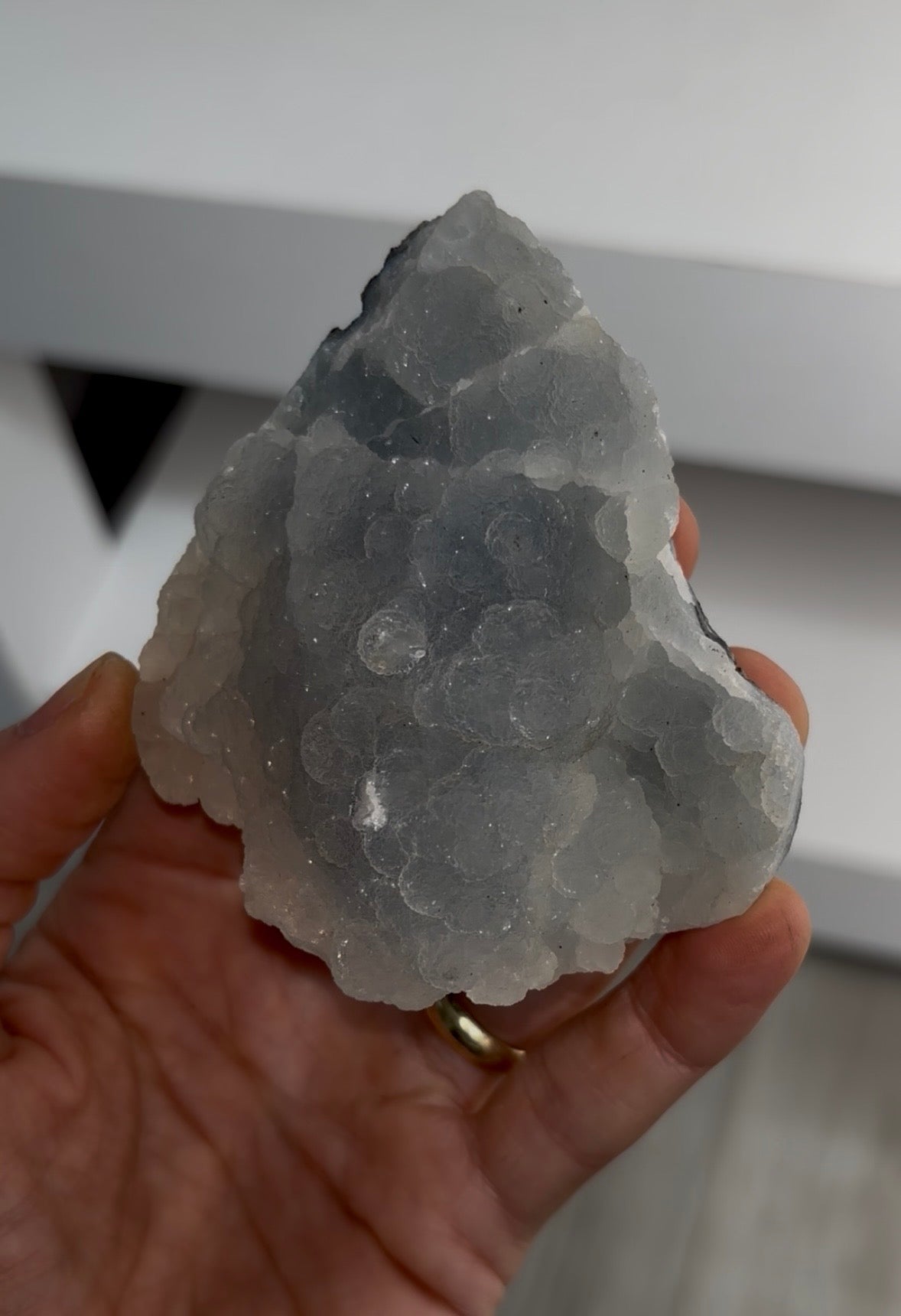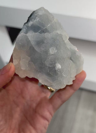Magical Blue Chalcedony with Sparkly Crystals Origin: Nashik, India Size : 85 x 75 x 30 mm Weight: 152 grams Read more