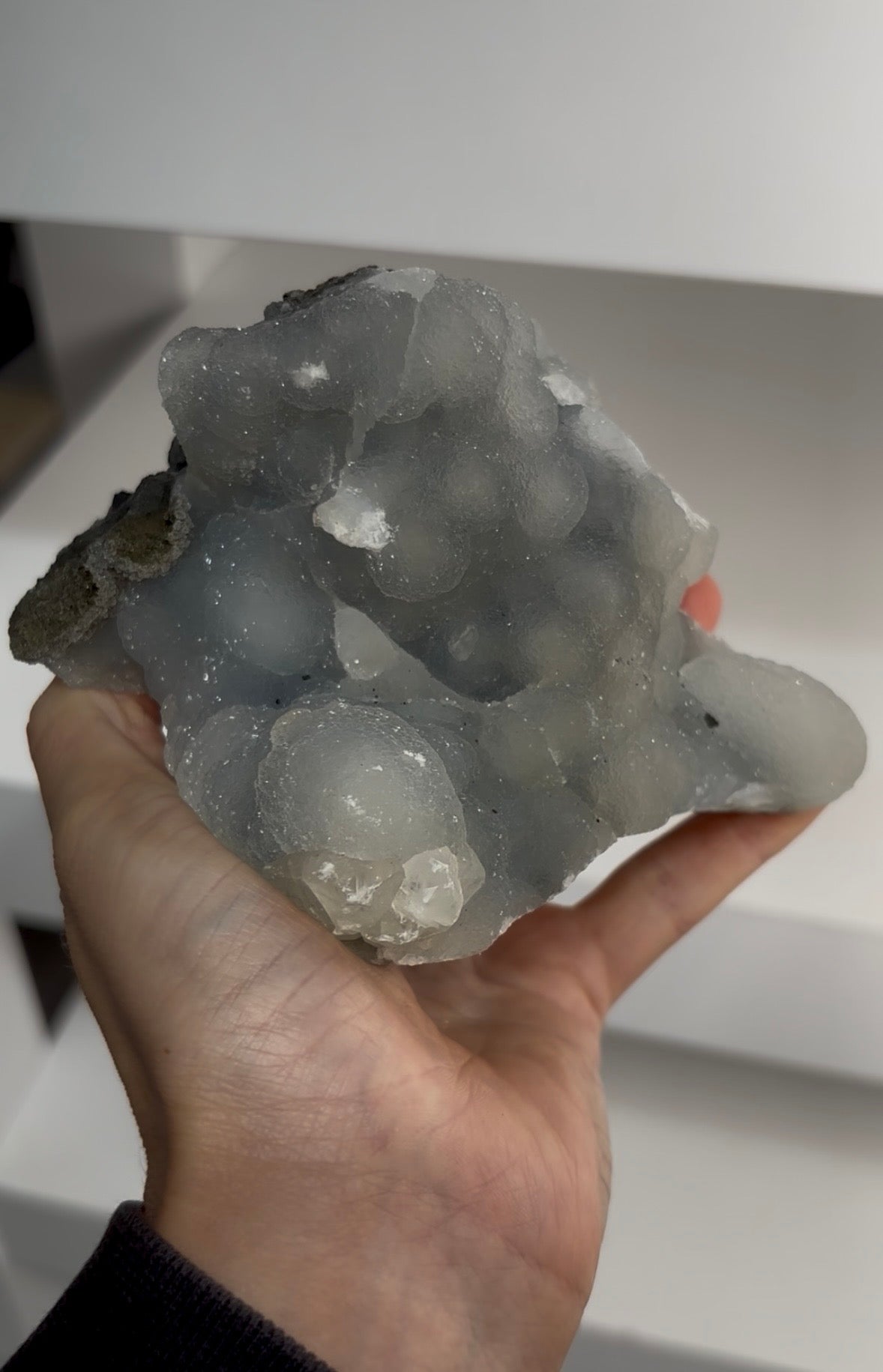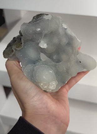 Magical Blue Chalcedony with Sparkly Crystals Origin: Nashik, India Size : 110 x 105 x 75 mm Weight: 636 grams Read more