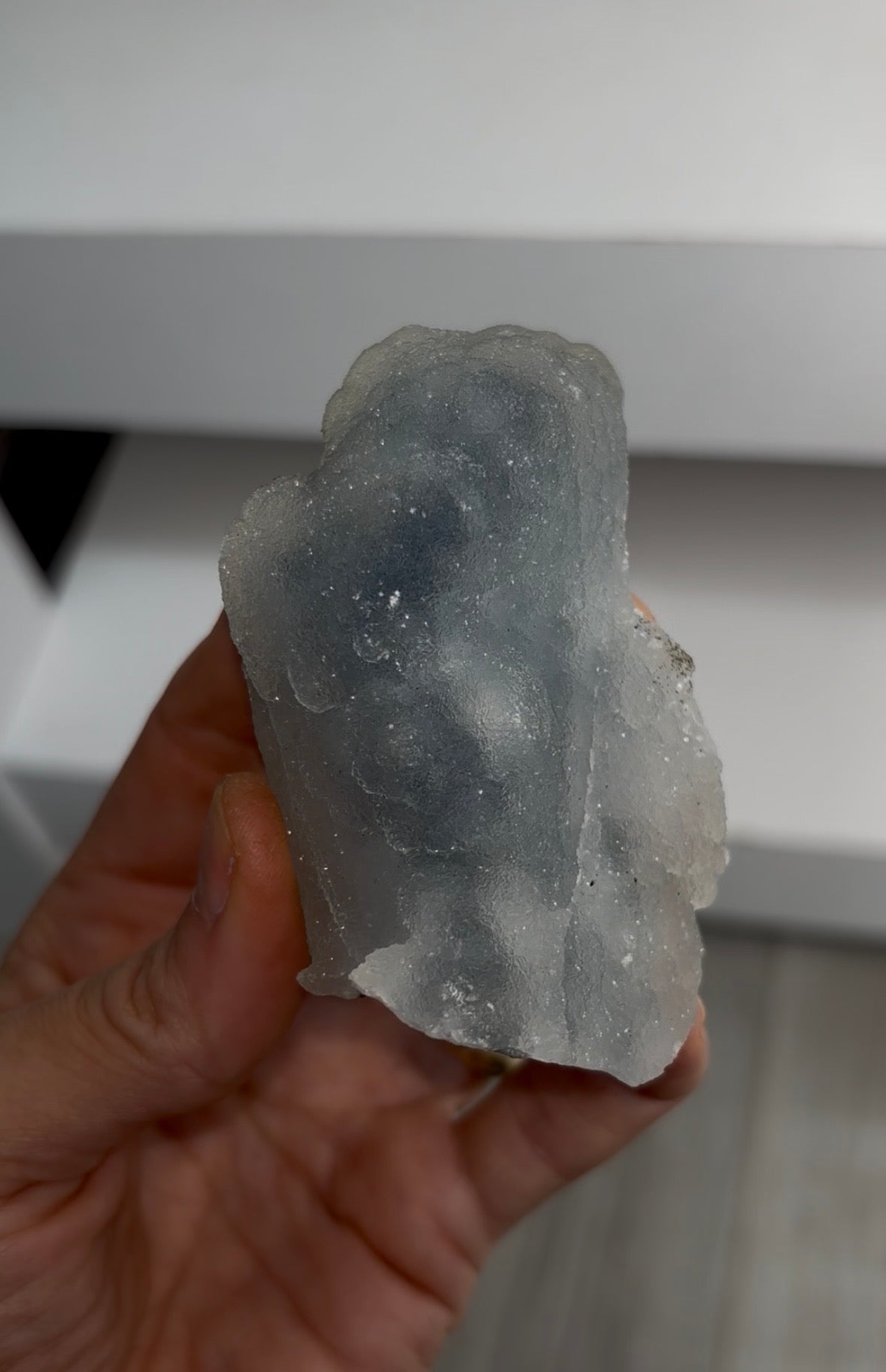 Magical Blue Chalcedony with Sparkly Crystals Origin: Nashik, India Size : 85 x 50 x 25 mm Weight: 139 grams Read more