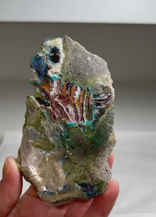 Absolutely stunning rich blue chrysocolla with native copper. The copper creates shiny streaks throughout the chrysocolla. From a recent discovery Origin:... Read more