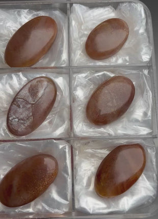 Beautiful Rainbow Sunstone 6 Piece Lot From India Size range: 46 - 38 mm Total Weight : 136 gr Read more