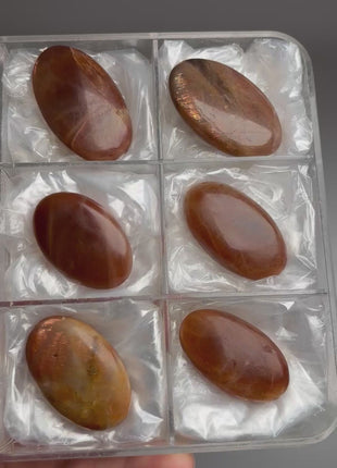Beautiful Rainbow Sunstone 6 Piece Lot From India Size range: 49 - 42 mm Total Weight : 142 gr Read more