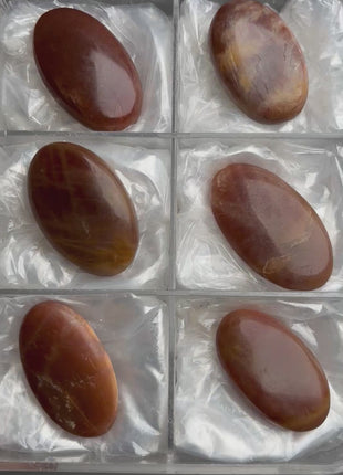 Beautiful Rainbow Sunstone 6 Piece Lot From India Size range: 49 - 43 mm Total Weight : 136 gr Read more