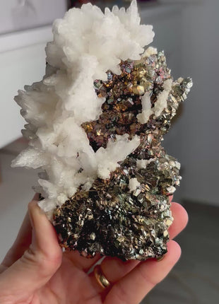 Rainbow Pyrite with Calcite Flowers Collection # 670
