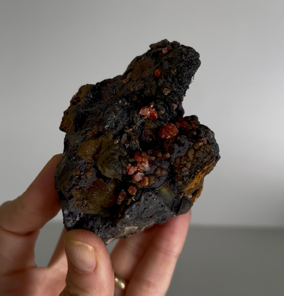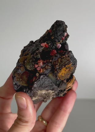 Unusual ! Red Vanadinite with Silky Black Coronadite