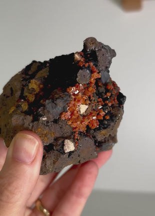 Unusual ! Red Vanadinite with Silky Black Coronadite