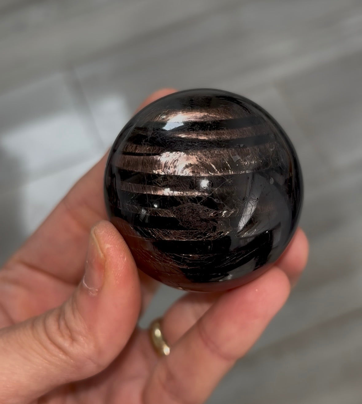 Hypsersthene sphere with stunning velvety sheen From: Canada Diameter : 49 mm Weight: 178 grams Read more