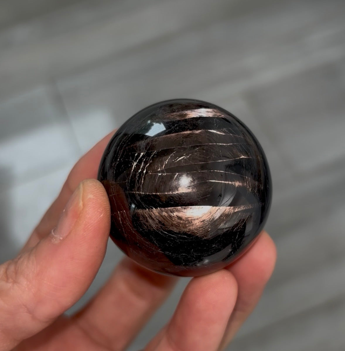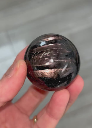 Hypsersthene sphere with stunning velvety sheen From: Canada Diameter : 44 mm Weight: 128 grams Read more