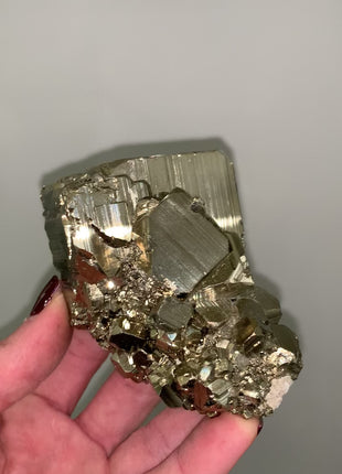 Very high grade Pyrite with great luster Origin: Huanzala, Peru Size: 70 x 50 x 45 mm Weight: 408 gr Read more