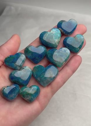 High Grade Blue Shattuckite Hearts 10 Piece Lot From: Namibia Size range: 25 - 18 mm Total Weight: 107 gr Read more