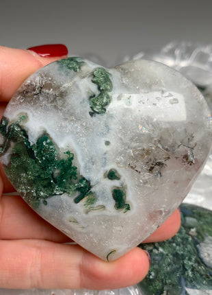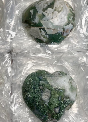 High Grade Green Moss Agate with Quartz Hearts Beautiful Color and Pattern 4 Piece Lot Size range: 65 - 67 mm Total... Read more