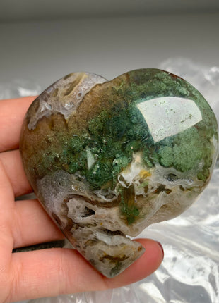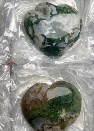 High Grade Green Moss Agate with Quartz Hearts Beautiful Color and Pattern 4 Piece Lot Size range: 65 - 68 mm Total... Read more